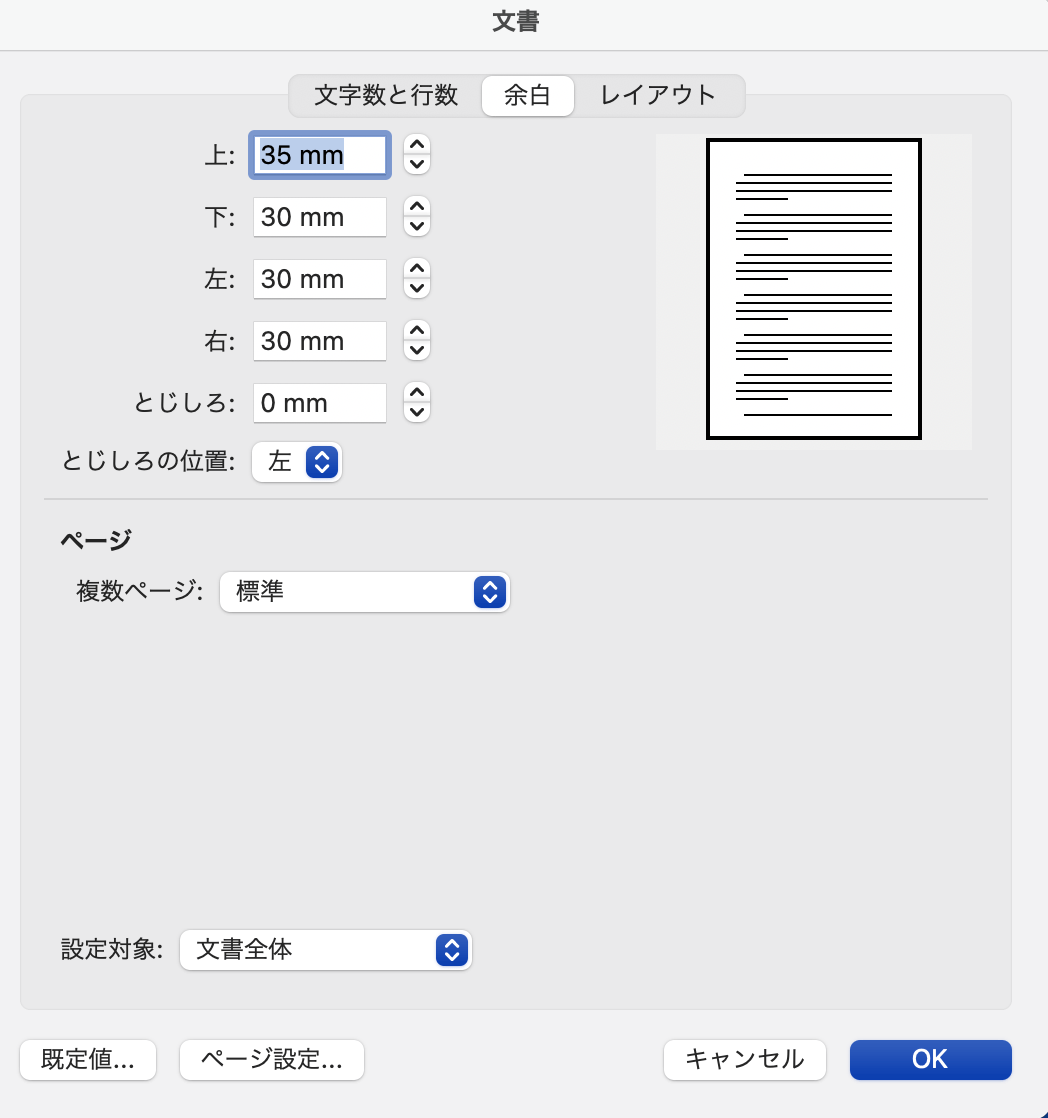 WordやPowerPointなどのOffice系アプリケーションも、PDF作成時に塗り足しをつける機能はないので、書類サイズを設定する必要があります。