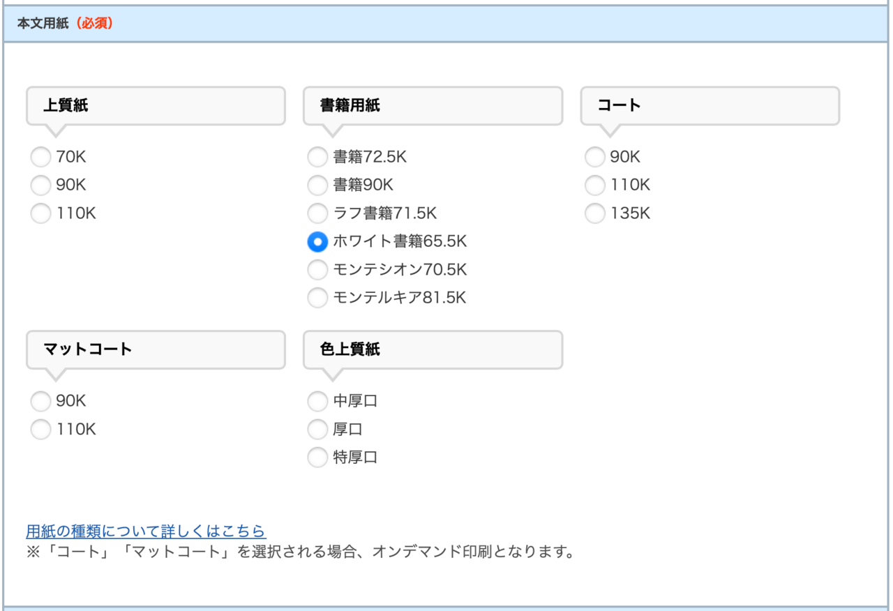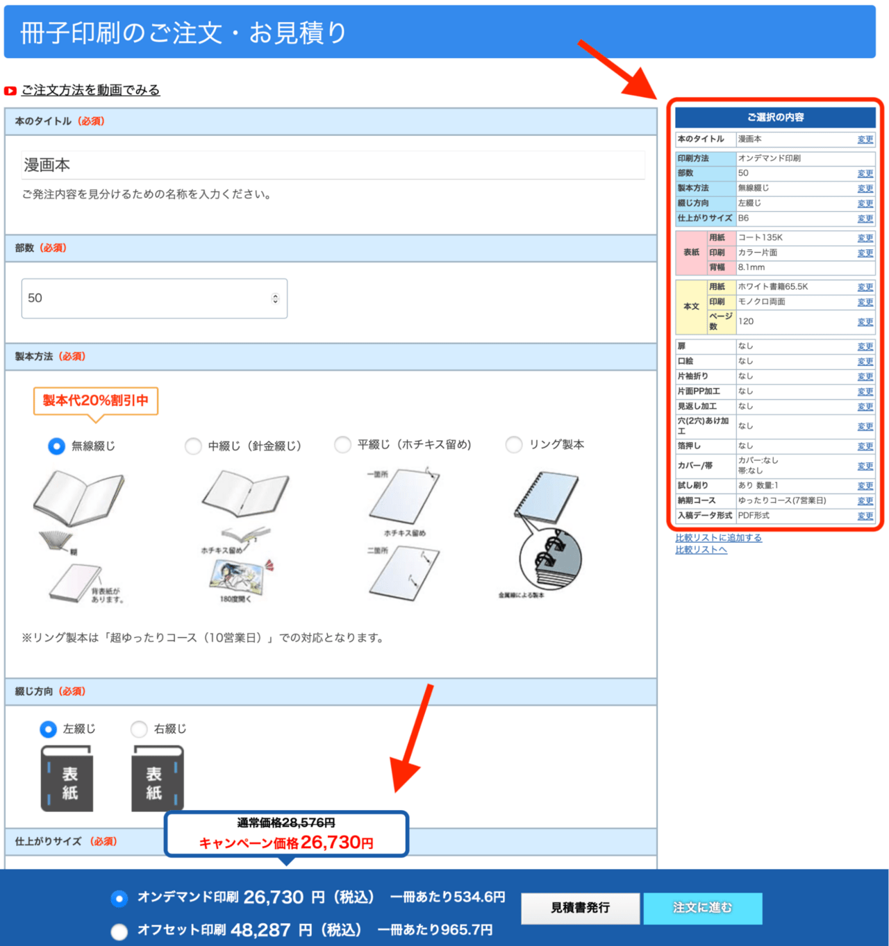 それでは注文の手順とともに、漫画におすすめの仕様を見ていきましょう。