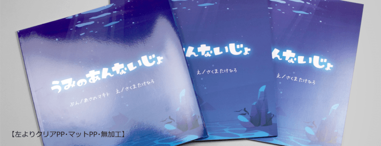 冊子の表紙にPP加工をご指定いただけます。ブックカバー、帯には標準でPP加工が施されています。